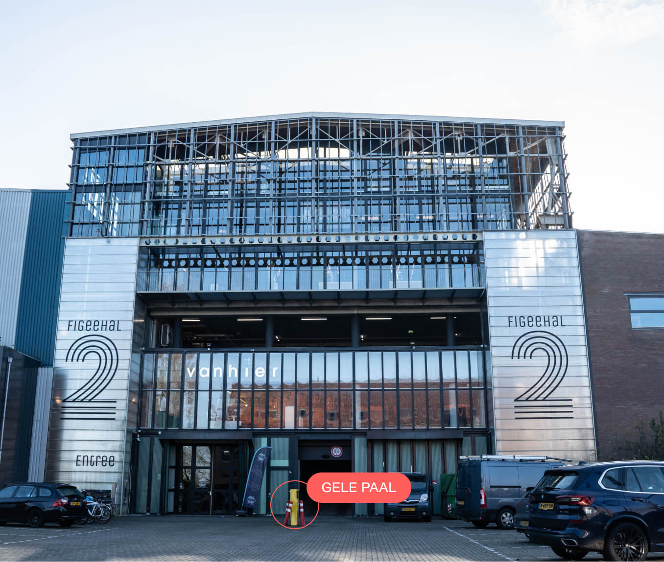 Aan het eind van de Hendrik Figeeweg bevindt zich een bord met alle bedrijven. Ga hier het hek door. Ga direct naar rechts en vervolgens weer links. Rij met de bocht mee, recht voor je bevindt zich Figeehal 2. Parkeren kan aan de voorkant van het gebouw. Is daar geen plek? Bel ons, dan doen we de garage voor je open.